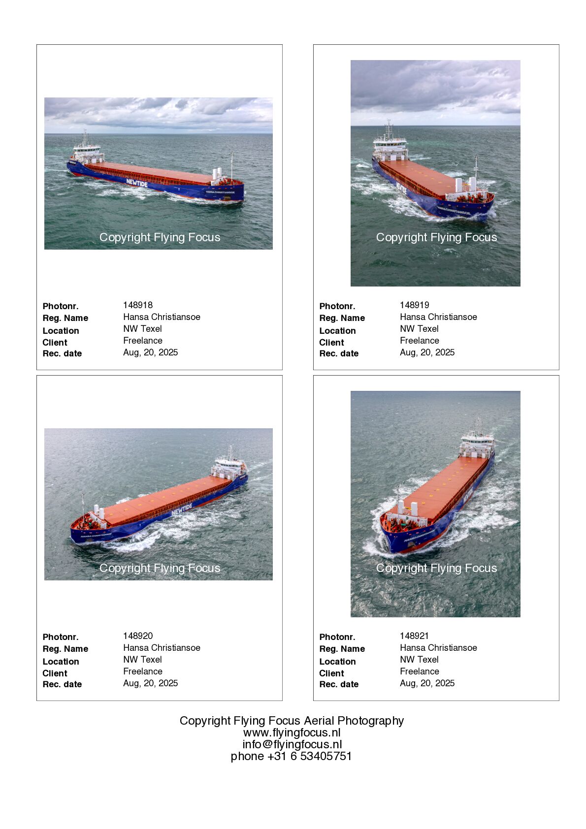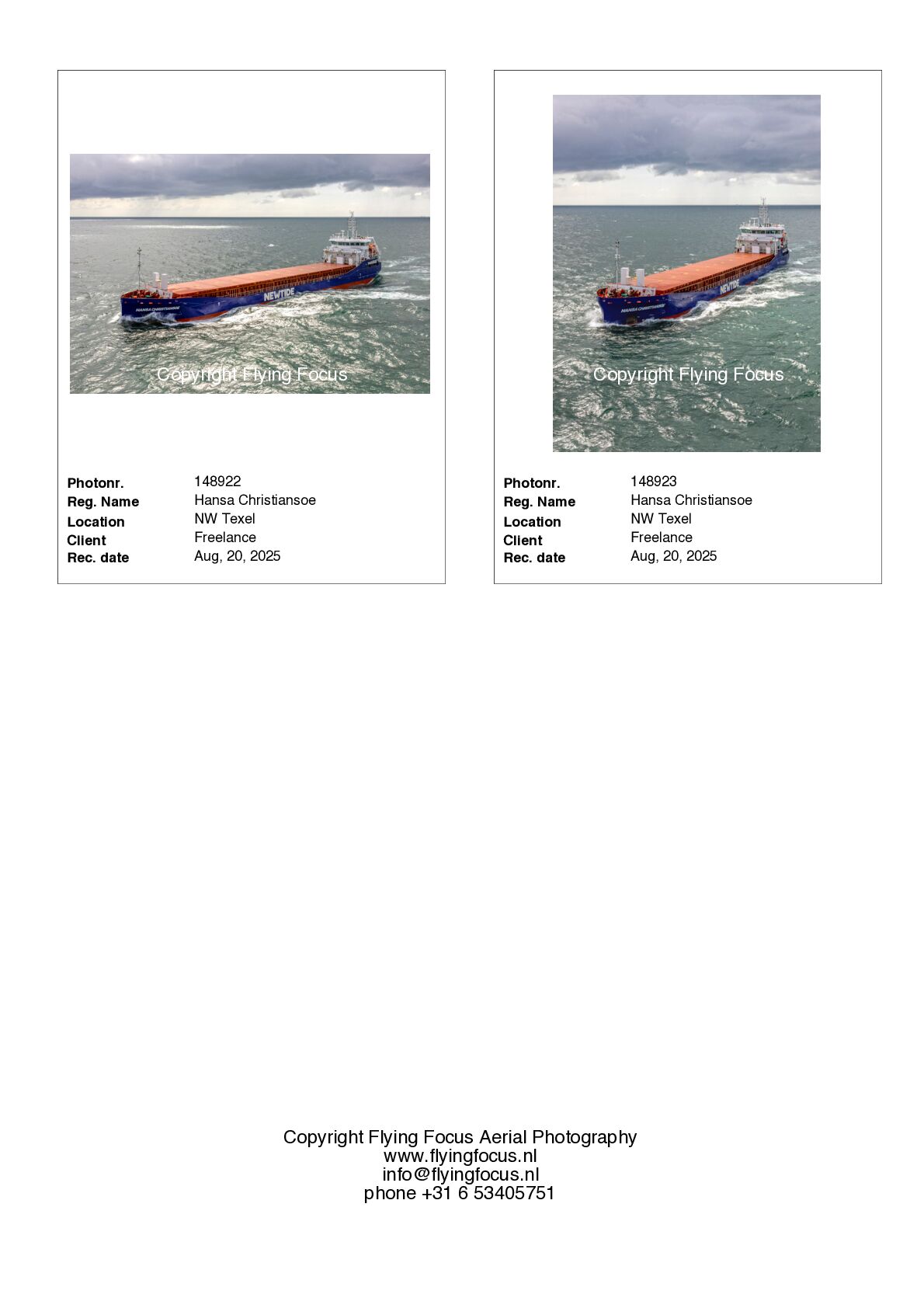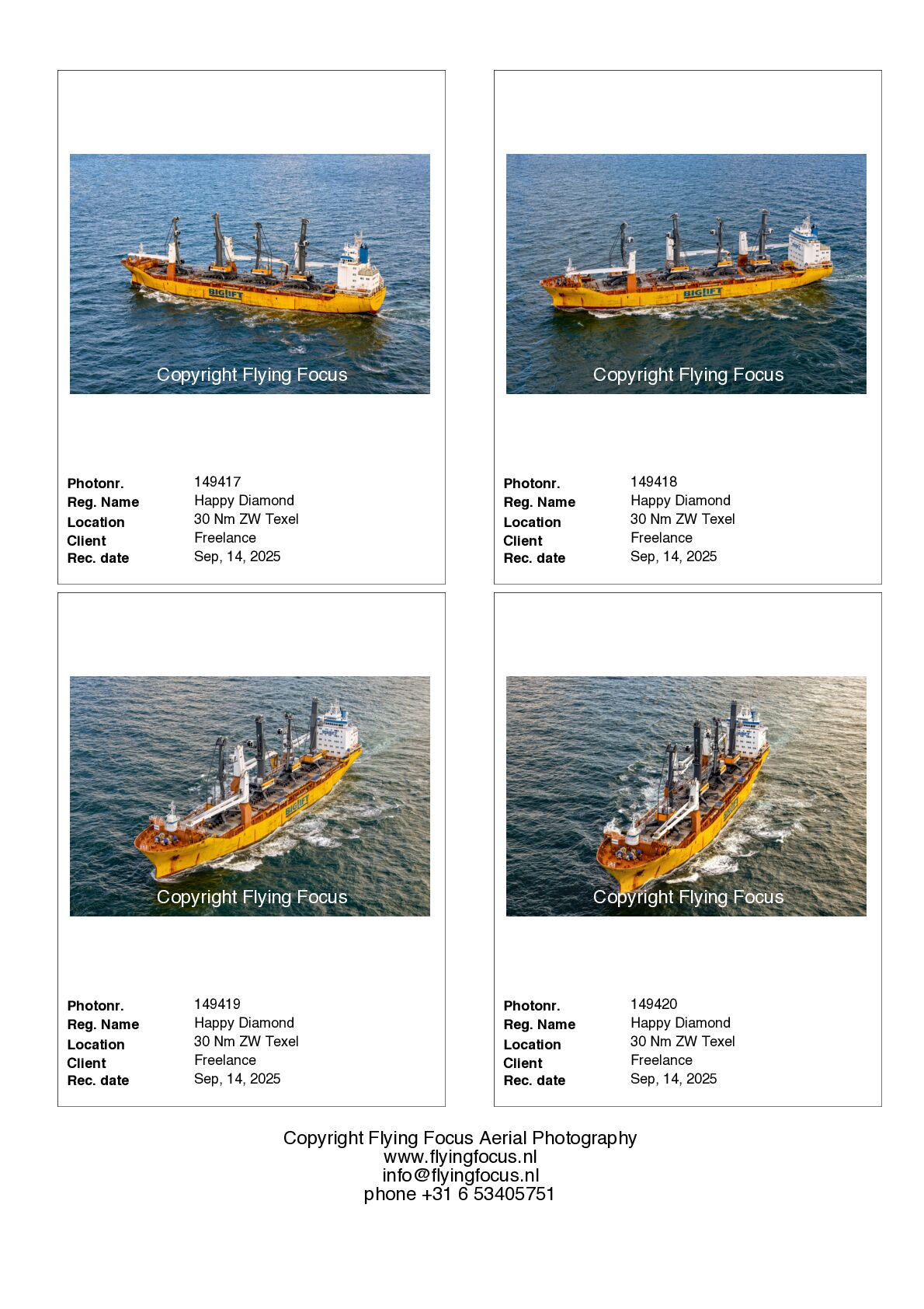 If you want to receive photosamples of a ship in our files you can sent an e-mail via info@flyingfocus.nl