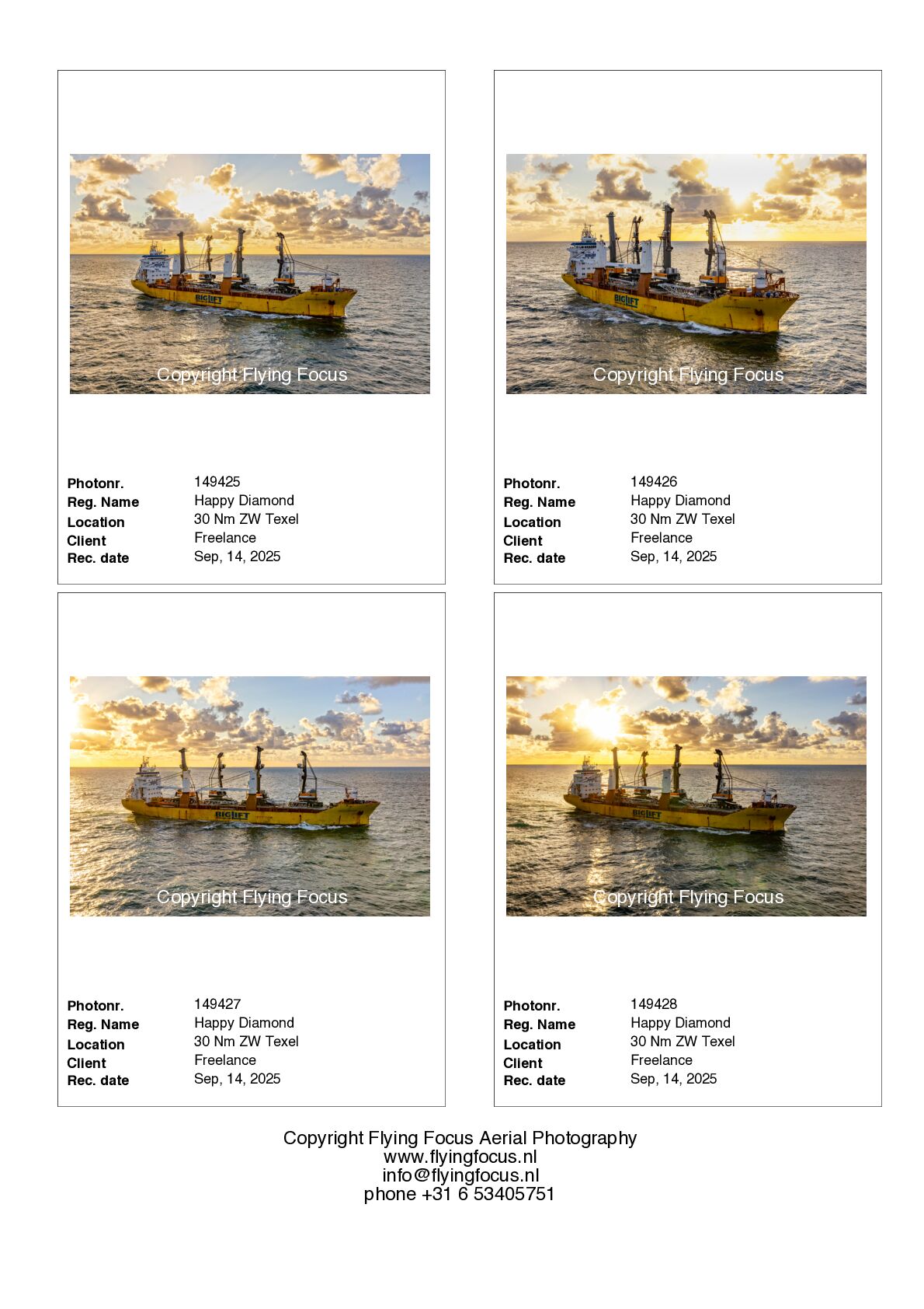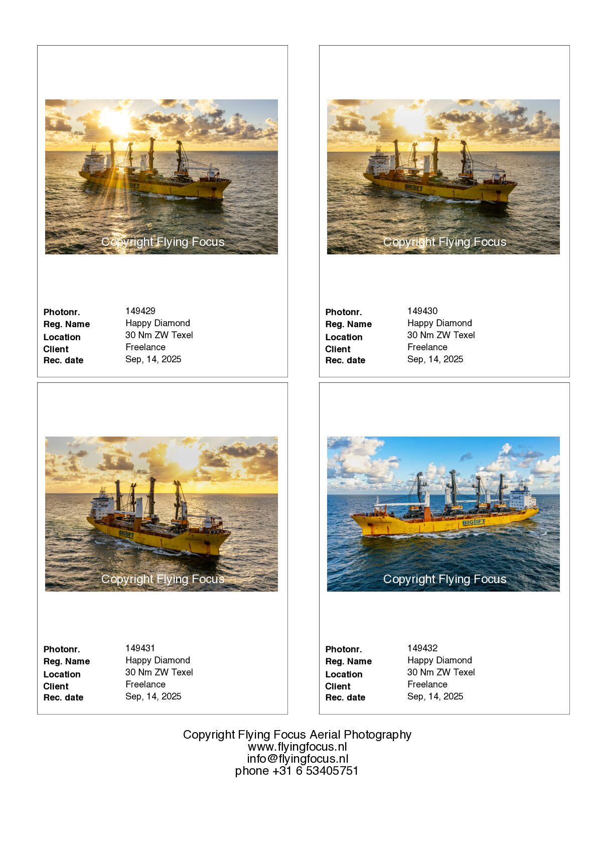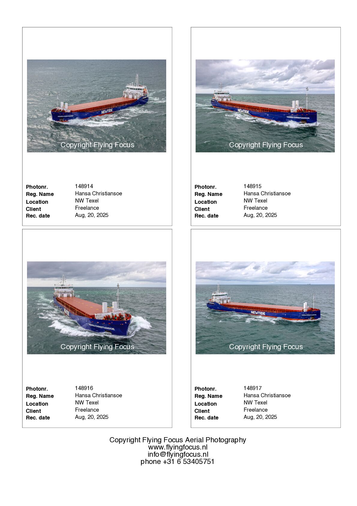If you want to receive photosamples of a ship in our files you can sent an e-mail via info@flyingfocus.nl