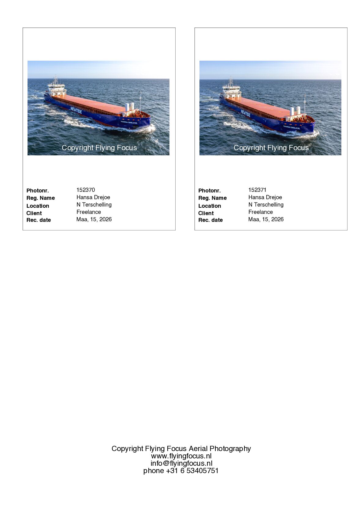 If you want to receive photosamples of a ship in our files you can sent an e-mail via info@flyingfocus.nl
