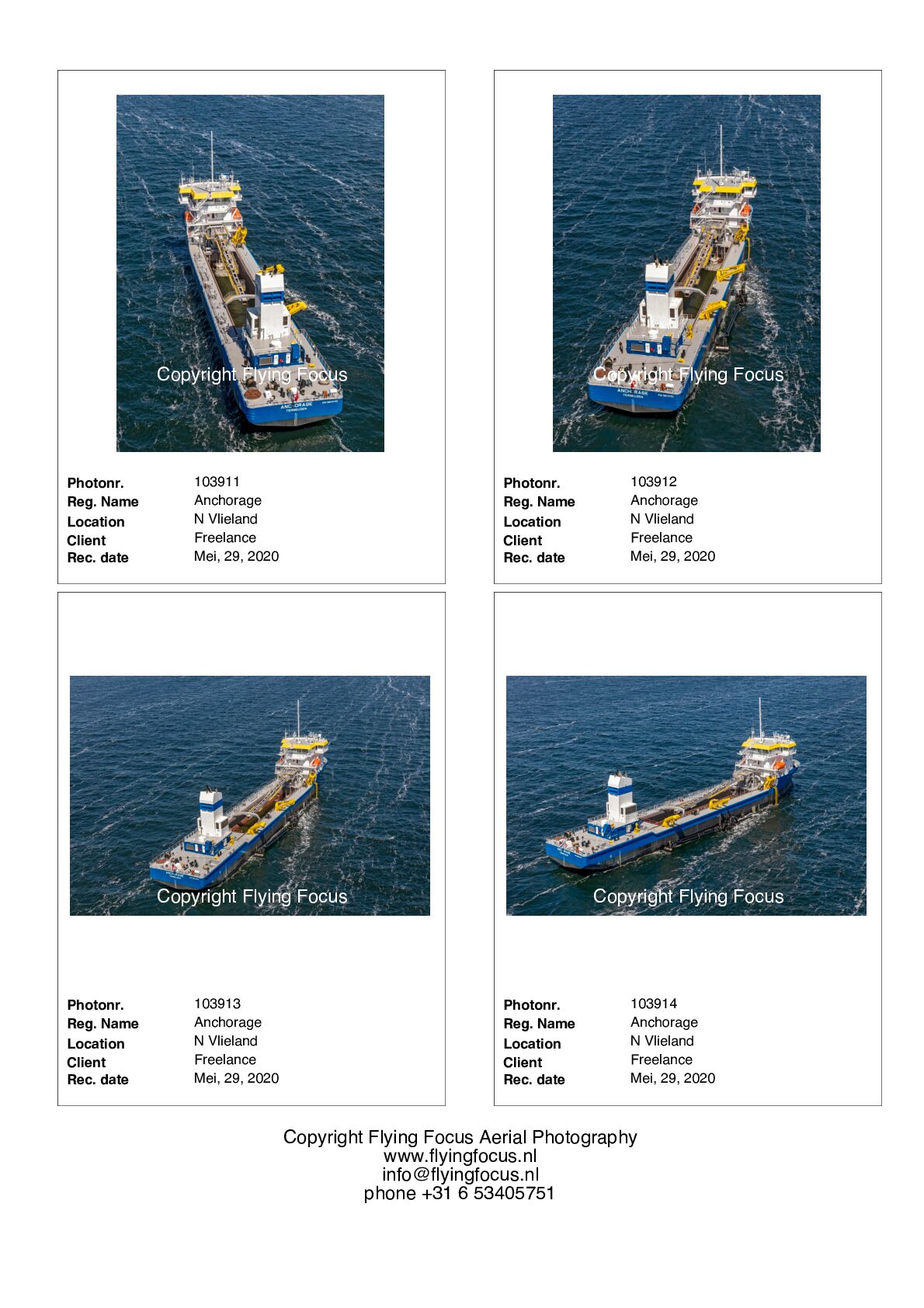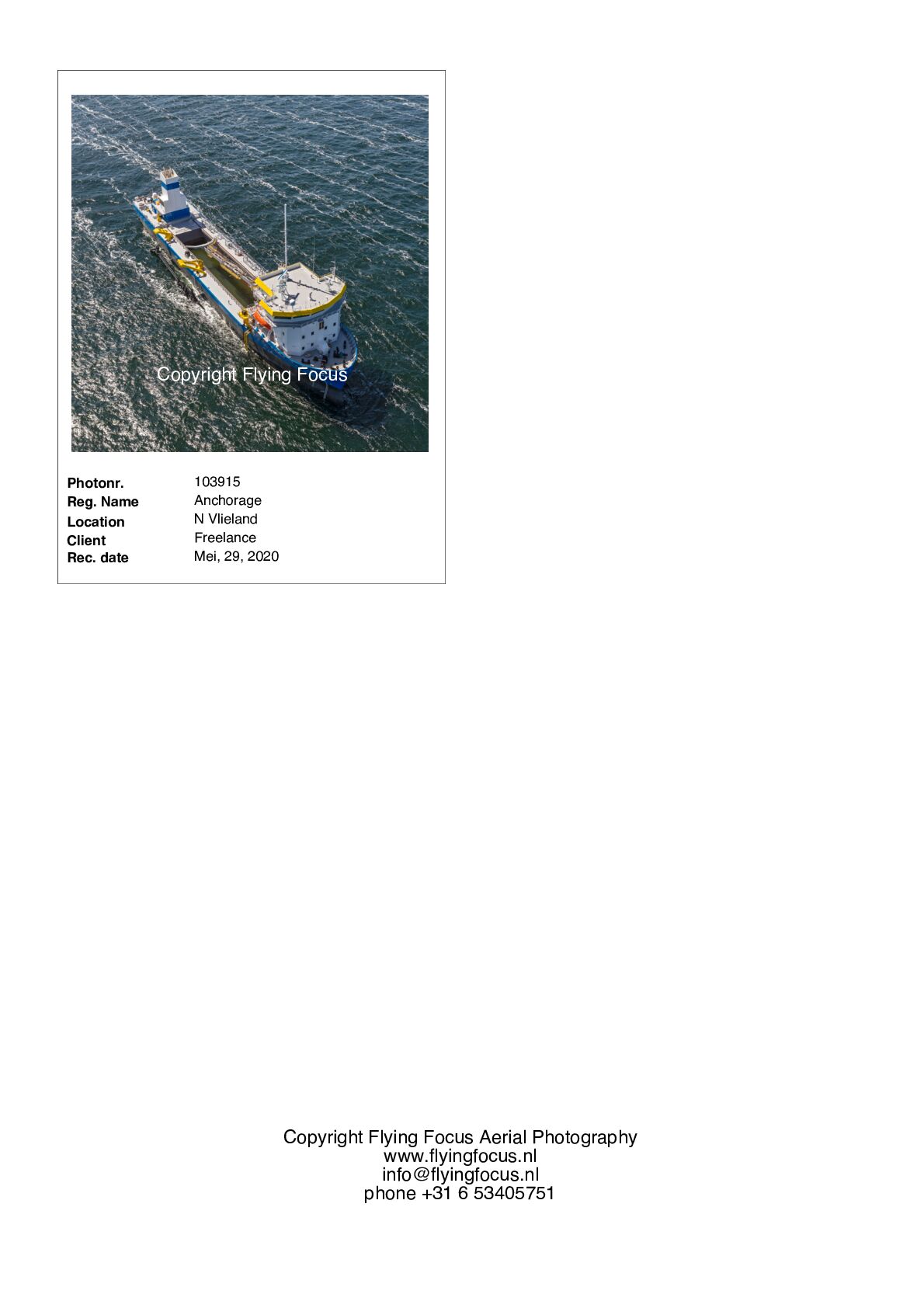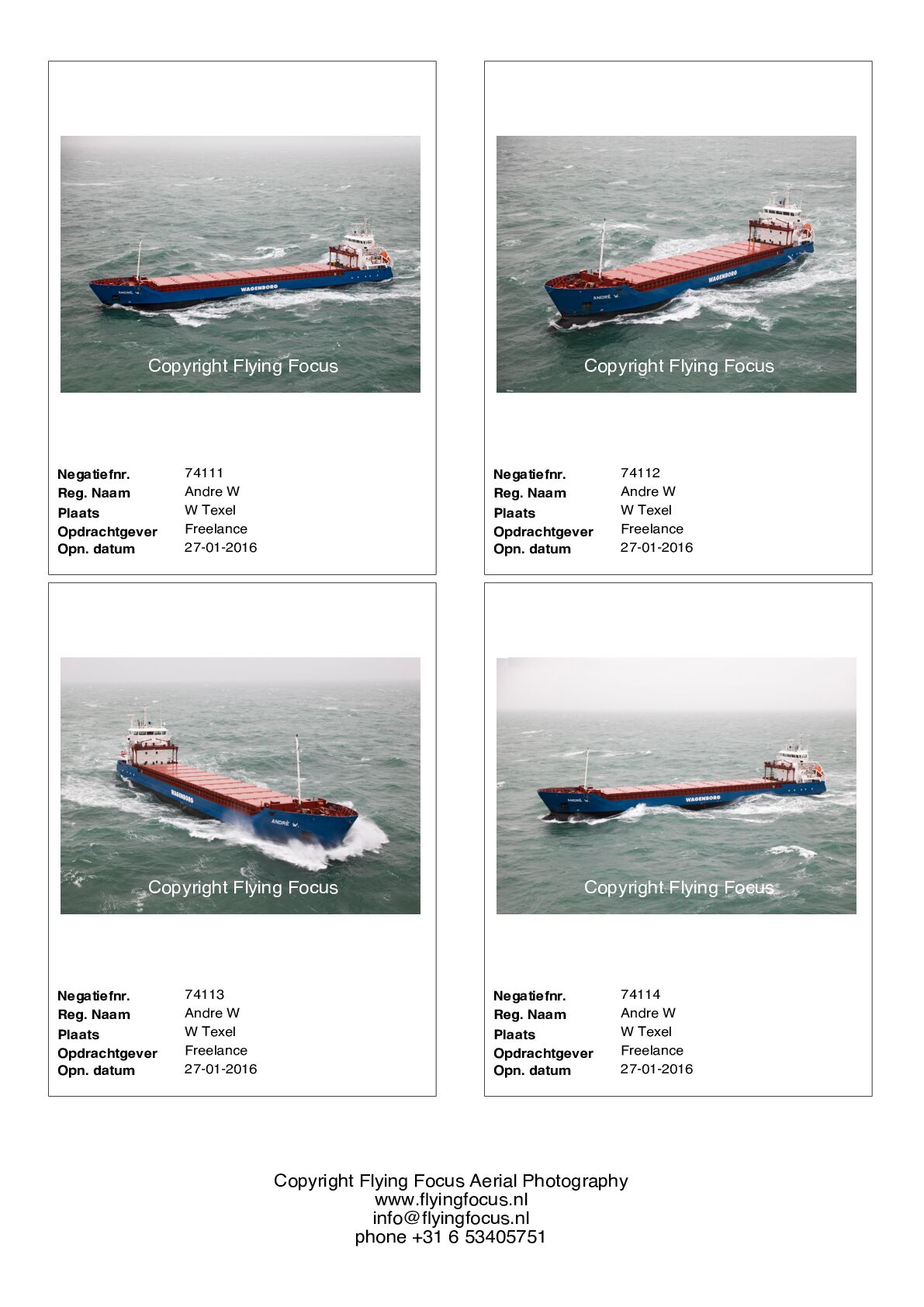 Indien wij een schip freelance hebben gefotografeerd waar u in geïnteresseerd bent kunt u ons per mail verzoeken u vrijblijvend voorbeelden en onze prijslijst te sturen. info@flyingfocus.nl