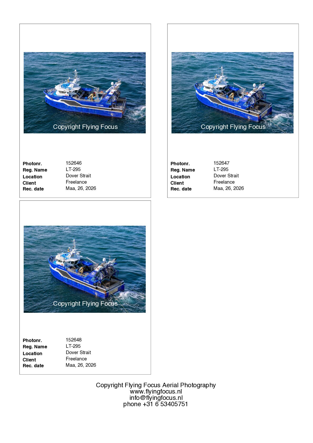 Indien wij een schip freelance hebben gefotografeerd waar u in geïnteresseerd bent kunt u ons per mail verzoeken u vrijblijvend voorbeelden en onze prijslijst te sturen. info@flyingfocus.nl